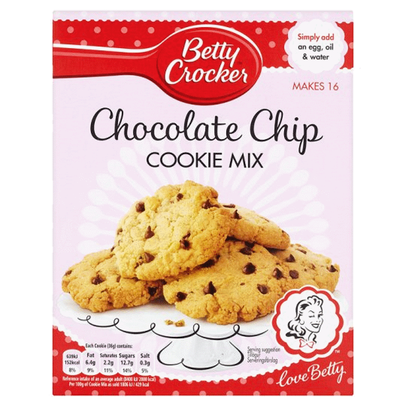 L’ingénieuse Betty Crocker nous surprend à chaque fois avec ses mix de pâtisseries incroyables. Rapides, faciles et surtout incroyablement bons, elle n’a sans doute pas fini de nous satisfaire. Betty Crocker Chocolate Cookie Mix en est la preuve, avec sa préparation à cookies aux pépites de chocolat. Il vous suffit tout simplement d’ajouter un œuf, de l’huile et puis de l’eau au mélange et le tour est joué. Une fois sorti du four, vous obtenez alors de délicieux cookies moelleux. Une spécialité américaine à ne pas manquer !