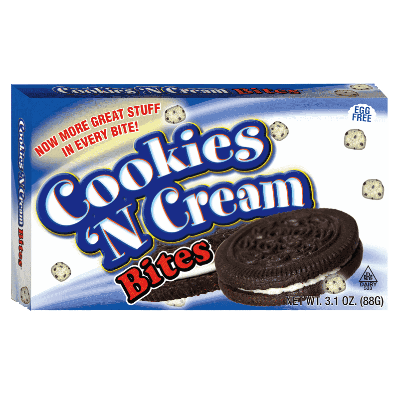 Cookie Dough Bites Cookies ‘N Cream est un snack assez bizarre. Ce sont des petites bouchées parfum cookie'n cream. Mais pas n'importe quelle bouchée... des bouchées à la pâte de cookies. Étrange non ? Pourtant les américains en raffolent ! C’est exactement ce même genre de bouchées que l’on trouve en fait dans les glaces au “cookie dough”. Les plus motivés pourront donc même faire leur propre glace au “cookie dough” !
