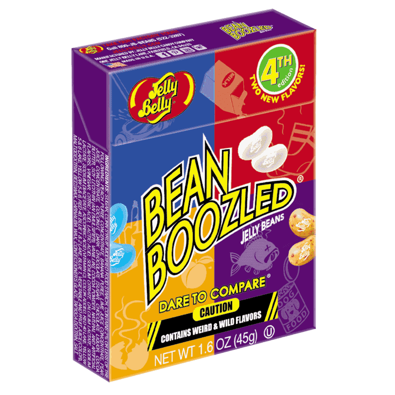 Sucre, sirop de glucose, amidon de maïs modifié, arômes, purée concentrée de pêche, colorants E102*-E110*-E129*-E132-E133-E150d-E171, régulateurs d'acidité E325-E330-E331, sel, agents de glaçage E901-E903-E904, chocolat (sucre, pâte de chocolat, beurre de cacao, émulsifiant E322 [lécithine de soja], arôme), jus concentrés (citron vert, poire), concentrés (pomme, carotte pourpre, hibiscus), poudre de cacao, noix de coco, antioxydant E300 (vitamine C), dextrine de tapioca, chocolat (35% minimum de cacao). *Peut avoir des effets indésirables sur l'activité et l'attention chez les enfants.