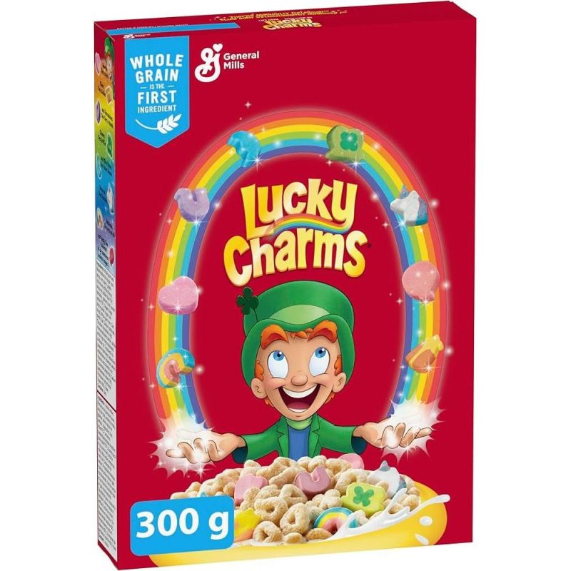 Ces Lucky Charms Cereals accompagnent les Américains, petits et grands, lors de leur Petit déjeuner depuis 1964. Versez ces morceaux d’avoines glacés et ses marshmallows colorés dans votre bol pour un pur moment de bonheur ! Chacun d’eux détiennent une forme spécifique : cœur, trèfle, arc-en-ciel, fer de cheval et tant d’autres. Les céréales Lucky Charms peuvent aussi être utilisées pour décorer vos gâteaux et même pour faire des cookies ou des milkshakes. Cette boîte est donc un véritable bonheur !