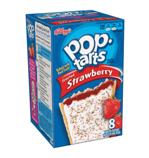 La saveur classique des fameux biscuits des petits-déjeuners américains : les Pop Tarts Strawberry. Le fourrage à la fraise est ainsi un pur délice. Et pour apporter un peu de fantaisie à votre début de matinée, la glaçage est recouvert de petites pépites en sucre aux couleurs de l'arc-en-ciel. Grillez-les ou bien mangez-les tels quels, impossible de ne pas les aimer !