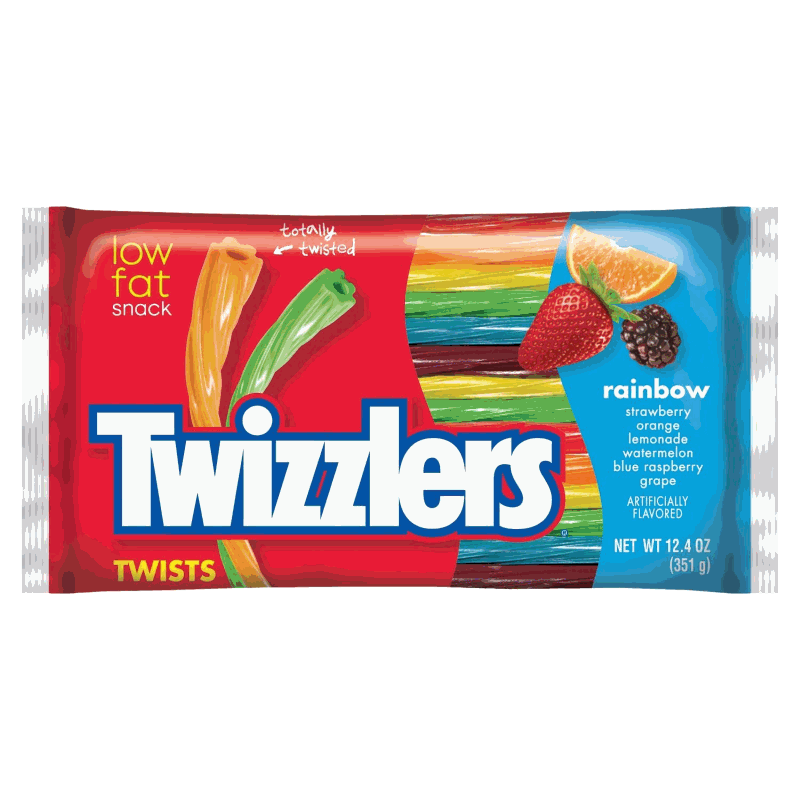 Twizzlers Rainbow apporte un peu de couleur dans le monde des Twizzlers où règne en maître la saveur fraise. Retrouvez alors les couleurs de l’arc-en-ciel et leur saveur associée : orange, citron, pastèque, mûre et raisin. C'est d'ailleurs le snack par excellence avec les pops-corn, à déguster devant un bon blockbuster Hollywoodien !